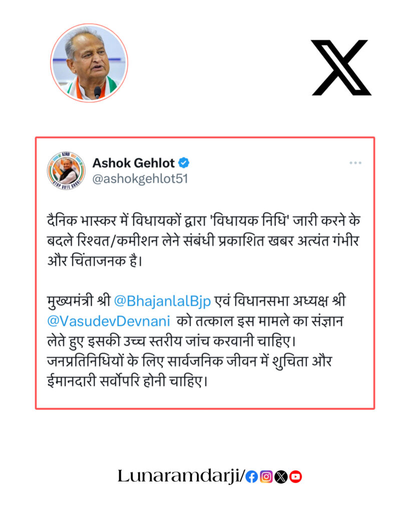 पूर्व मुख्यमंत्री अशोक गहलोत ने इस खबर को अत्यंत गंभीर और चिंताजनक बताते हुए उच्च स्तरीय जांच की मांग की है।